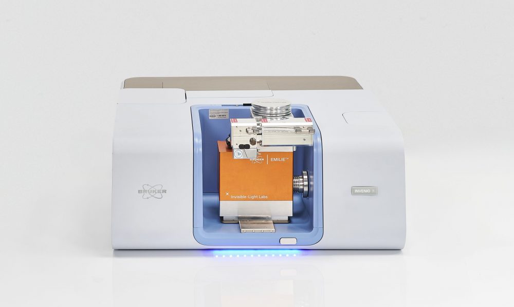 The EMILIE is a nanoelectromechanical system-based Fourier-transform infrared spectroscopy (NEMS-FTIR) analyser for bulk chemical analysis of nanoparticles and thin films. It combines the large spectral range of the INVENIO FTIR spectrometer with picogram sensitivity of the nanoelectromechanical system (NEMS).
